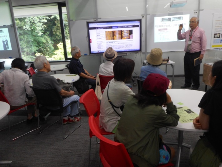 『和英語林集成』150周年展示では、明治学院歴史資料館研究調査員の松岡良樹氏をお招きし、日本における国語辞典の成り立ち、その中でのJ.C.ヘボン編纂『和英語林集成』の存在意義、与えた影響について、当初の予定時間を超えて詳細に語っていただきました。
