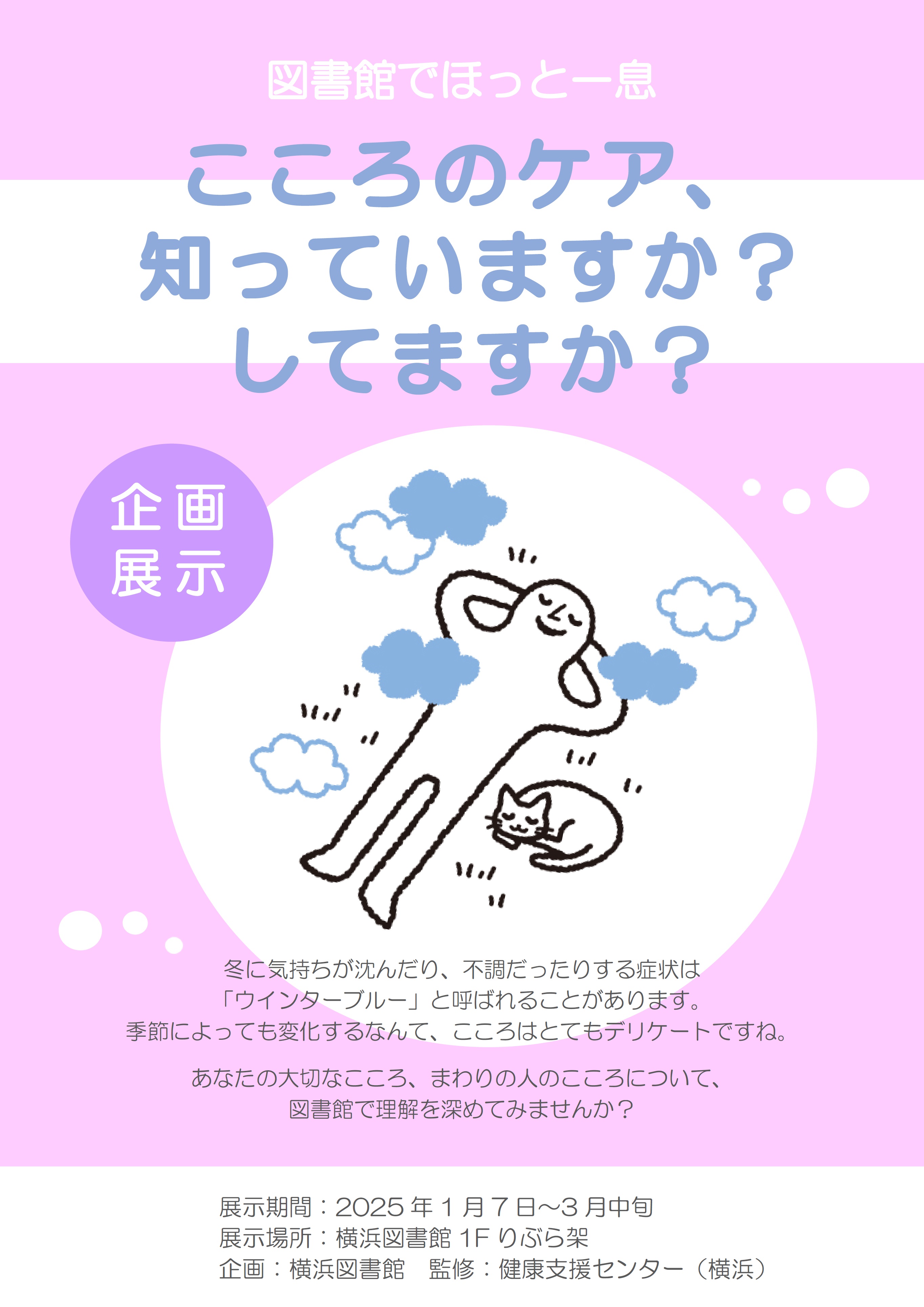 【横浜校舎図書館】企画展示「図書館でほっと一息 こころのケア、知っていますか? してますか?」