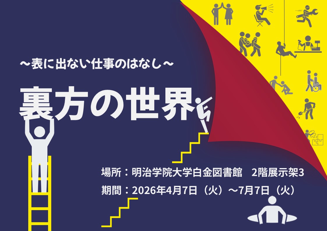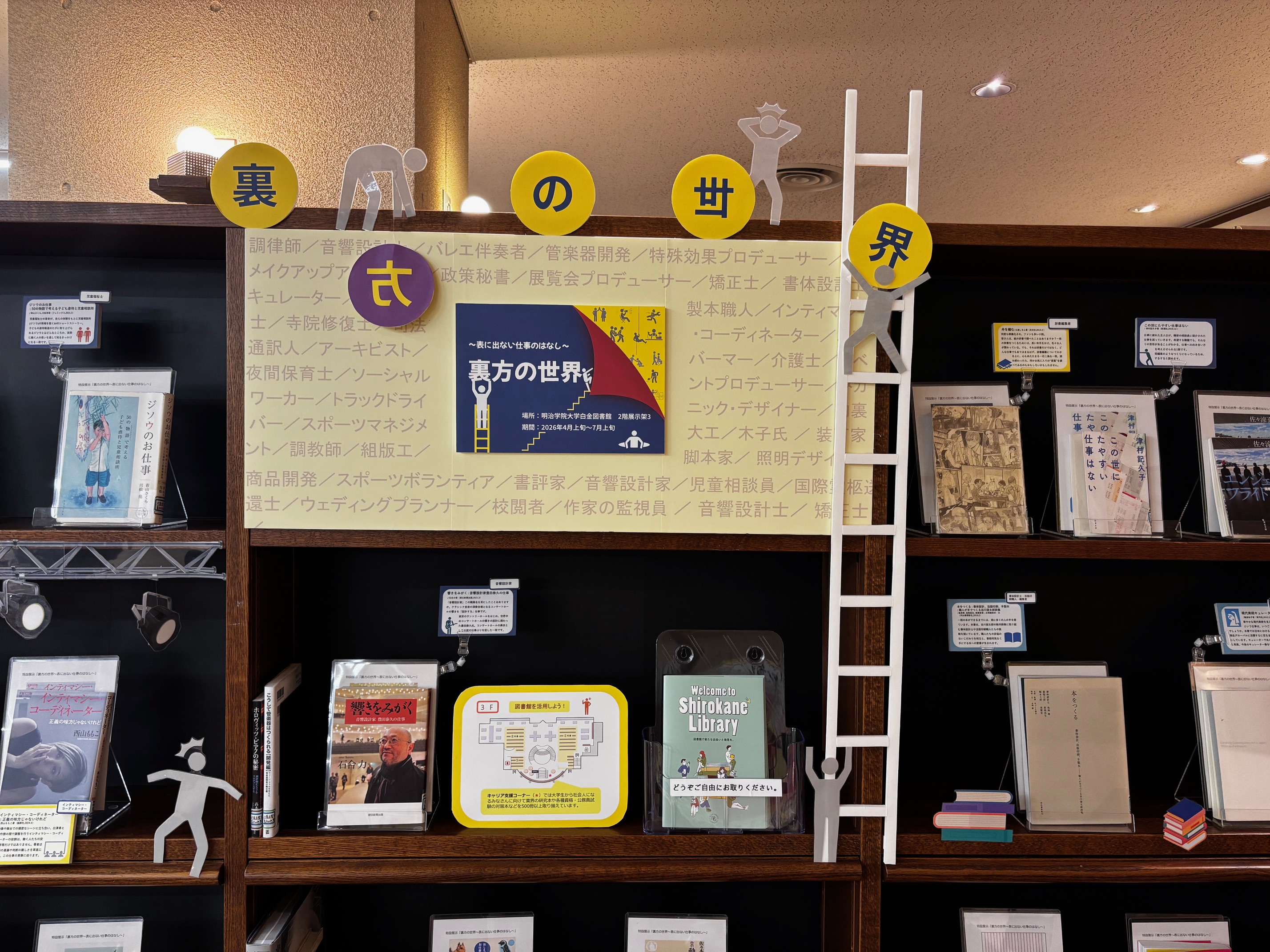 【白金校舎図書館】特設展示「裏方の世界~表に出ない仕事のはなし~」開催中です