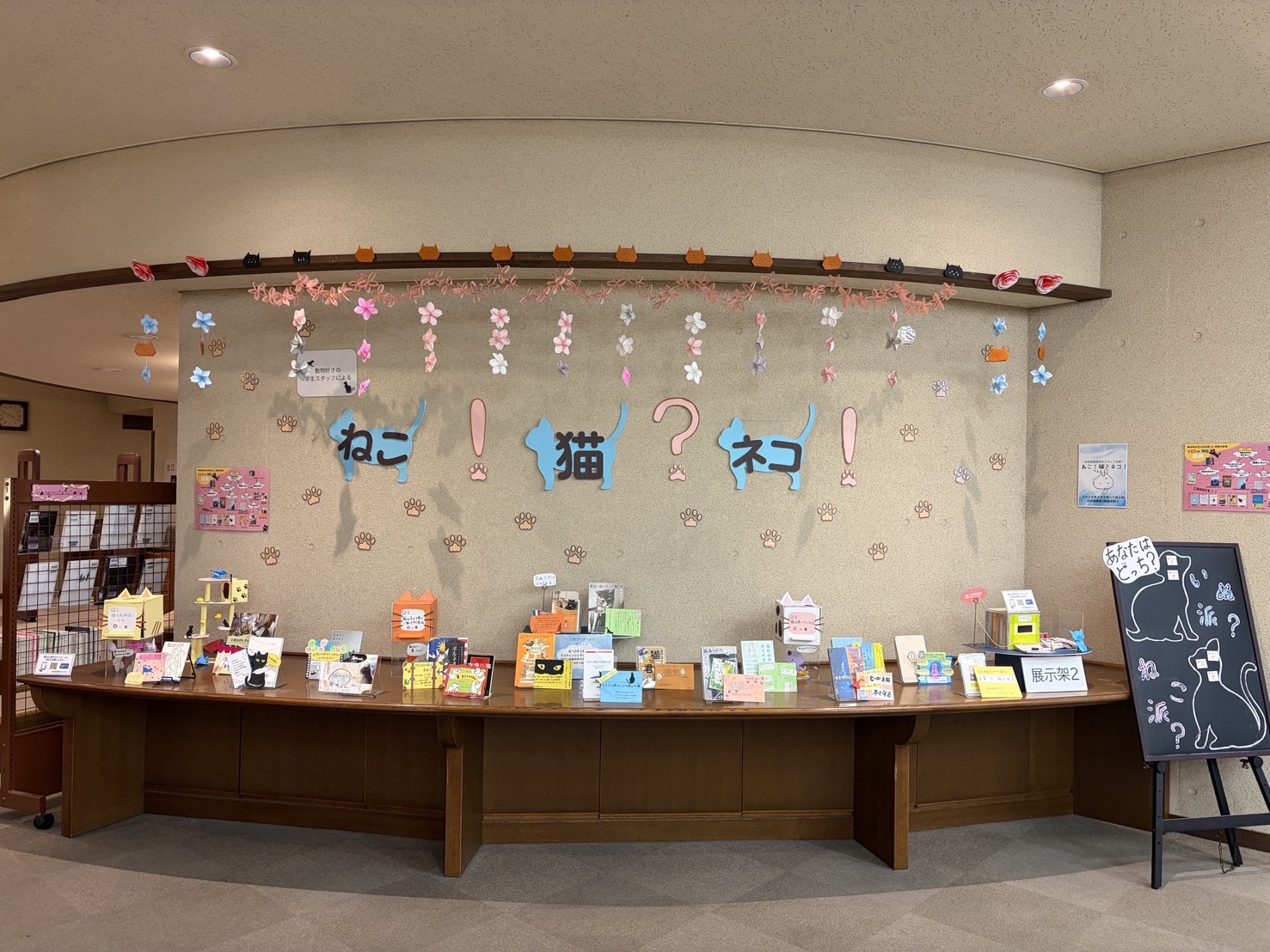 学生スタッフによる企画展示「ねこ!猫?ネコ!」が始まりました。