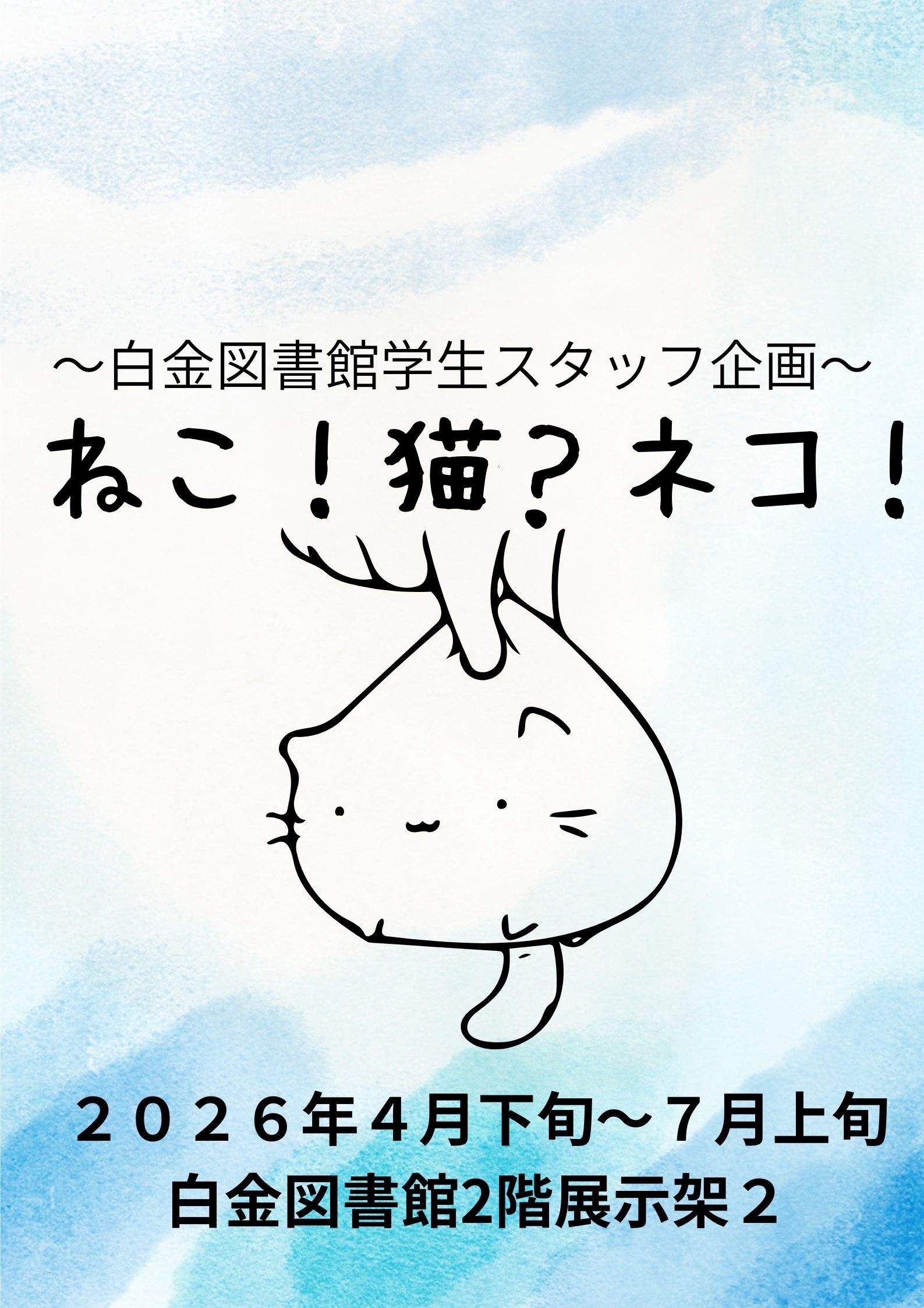 【白金校舎図書館】学生スタッフ企画展示「ねこ!猫?ネコ!」開催中です