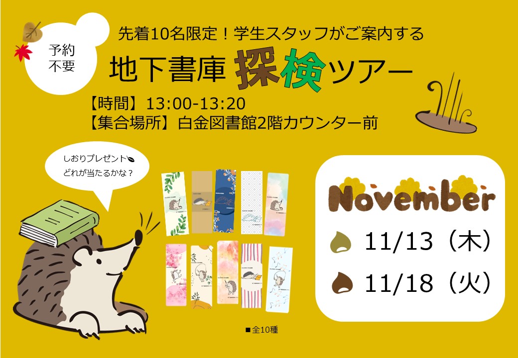【白金校舎図書館】地下書庫探検ツアー開催中です!