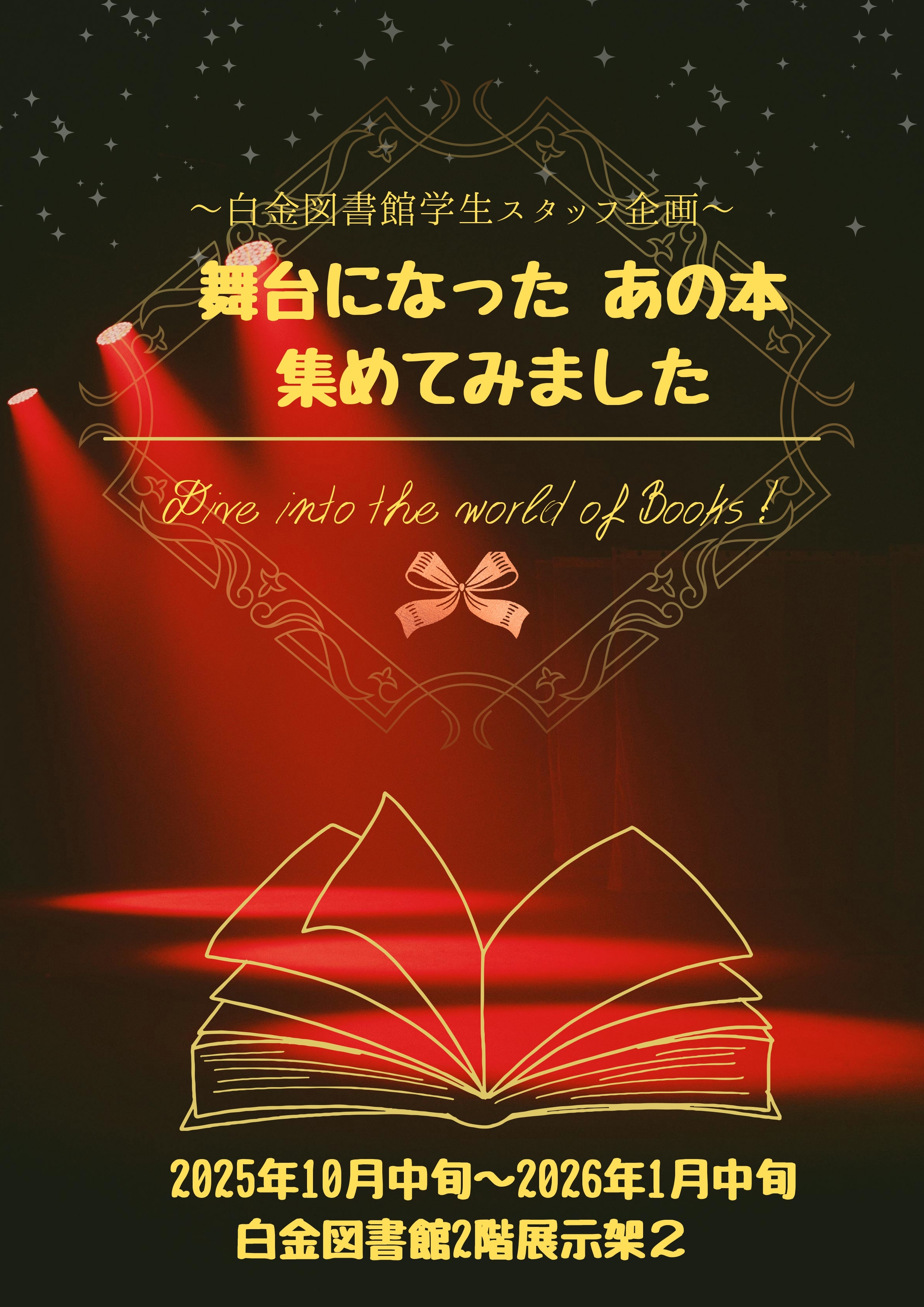 【白金校舎図書館】学生スタッフ企画展示「舞台になった“あの本”集めてみました」開催中です