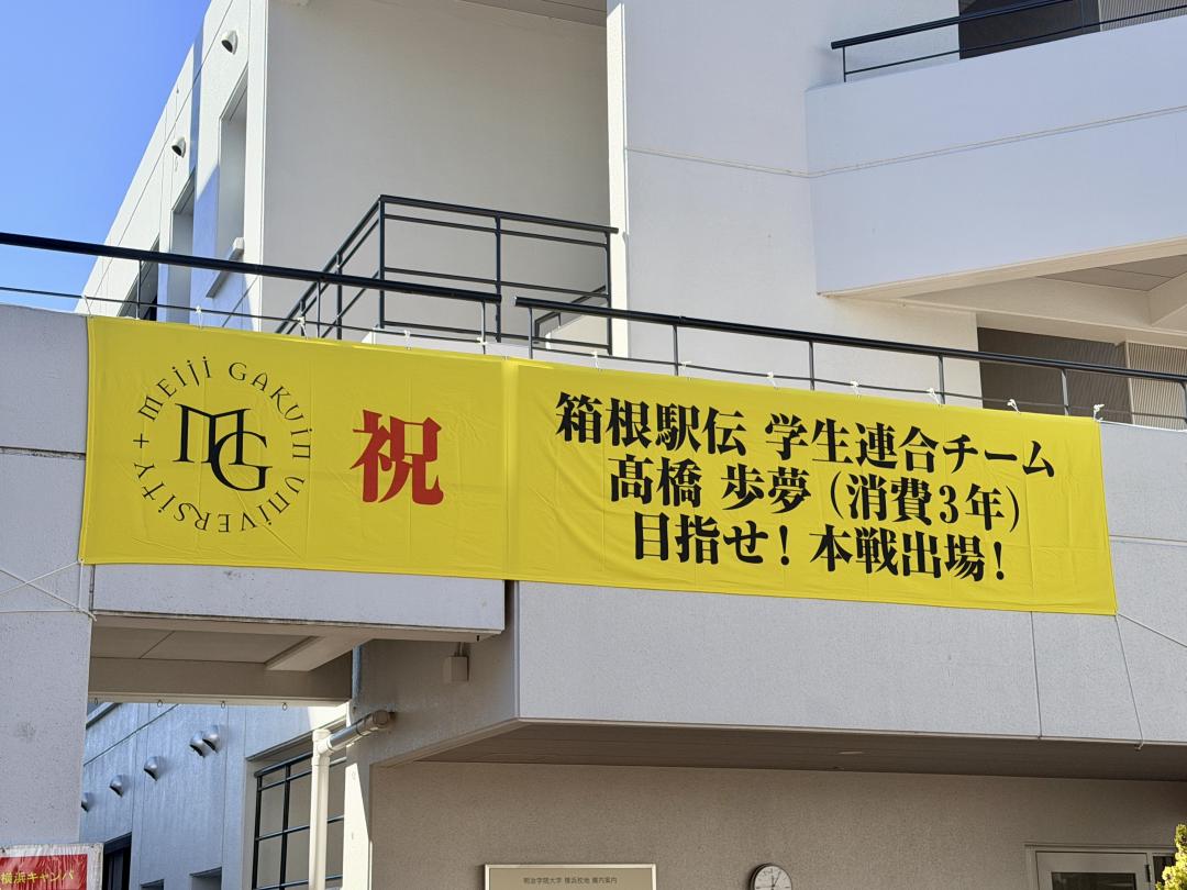 陸上競技部(長距離ブロック)・髙橋歩夢選手/関東学生連合チーム選出の横断幕を設置